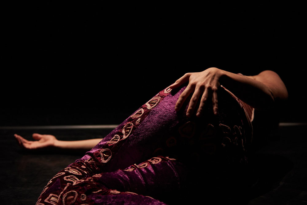 Starting from a fascination for the Italian expression mangiare con gli occhi (literally: “eating with the eyes”, to desire, to crave), the creation aims at questioning the way the body is observed. EAT ME begun as a reflection on the portrayal of female bodies in visual arts and the consumption of images. Lying down and facing back, the choreographic score passes through an archive of historically charged yet ever-contemporary everyday gestures – tracing a leg, fixing one’s hair. Blatantly frontal but hidden images serve as an invitation to investigate the dynamics and politics of the gaze in the relationship between spectator and performer.